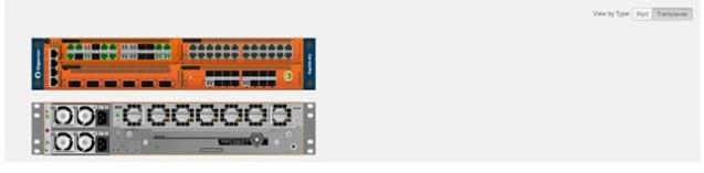 When you click the Chassis link in the Navigation pane, the Chassis page displays a graphical representation of the node. This is the Chassis View and the default. You can select this view when in the Table View by clicking the Chassis View button indicated in Figure 1 Chassis View. Chassis View includes two types of views. Port View and Transceiver View. Transceiver View is the default view.
