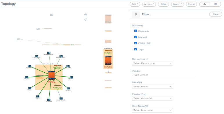 In the following figure, all Discovery filters are selected and two clusters are specified in the Cluster ID(s) field. Only items that meet the filter criteria are displayed while all other elements are grayed out.