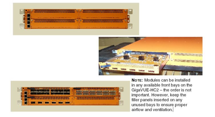 This completes the installation of the modules on the front of the GigaVUE‑HC2.