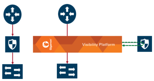 | • | If the IPS modifies packets, then the modified packets will come out of the inline tool, go to the GigaSMART module to be re-encrypted, and sent to the server. |