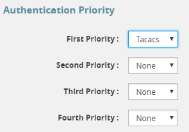 The Authentication Priority section of the AAA page specifies which authentication methods should be used for logging in to the GigaVUE HC series node as well as the order in which they should be used.