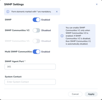| 2. | On the SNMP page, click Settings. The SNMP Settings page displays as shown in 1 |
