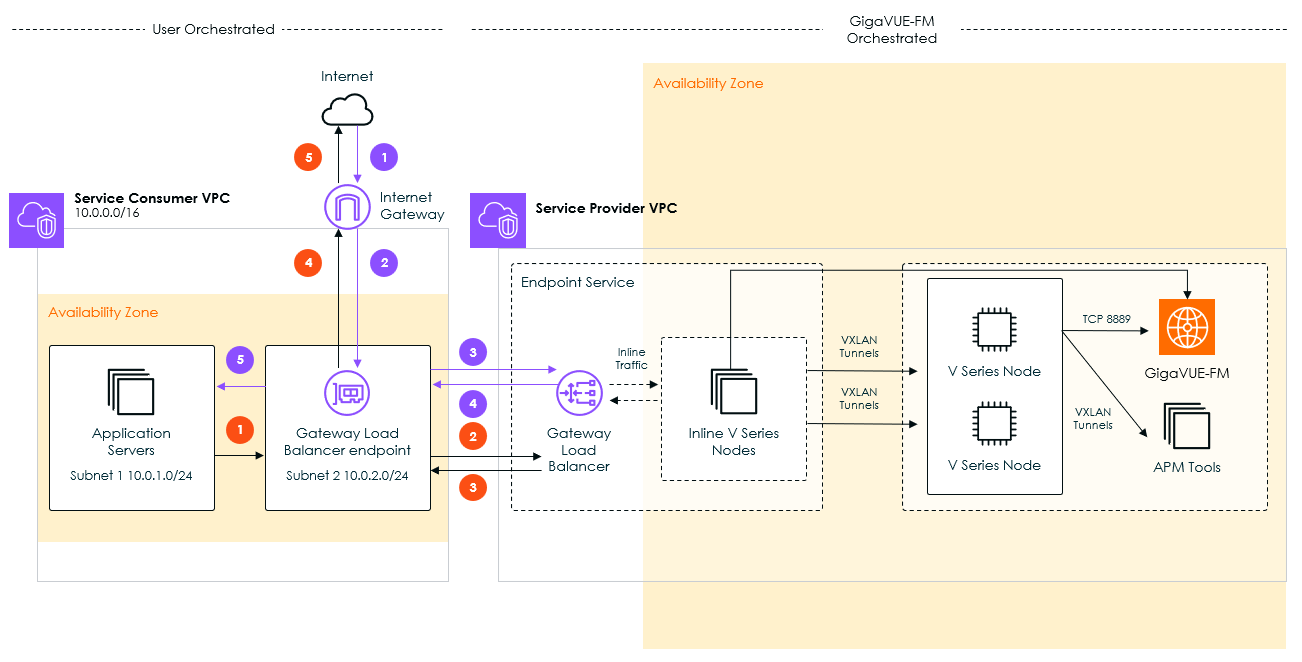 - The inline traffic is sent back to the Gateway Load Balancer endpoint in the application VPC.