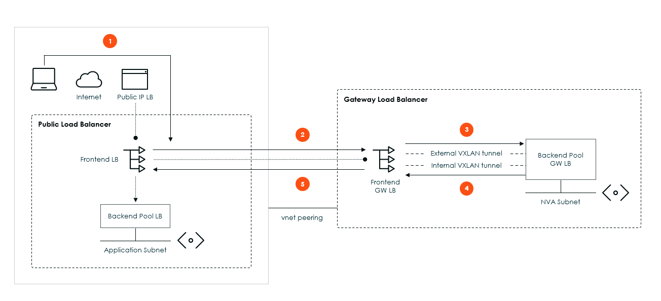 - This traffic is routed the Gateway Load balancer.
