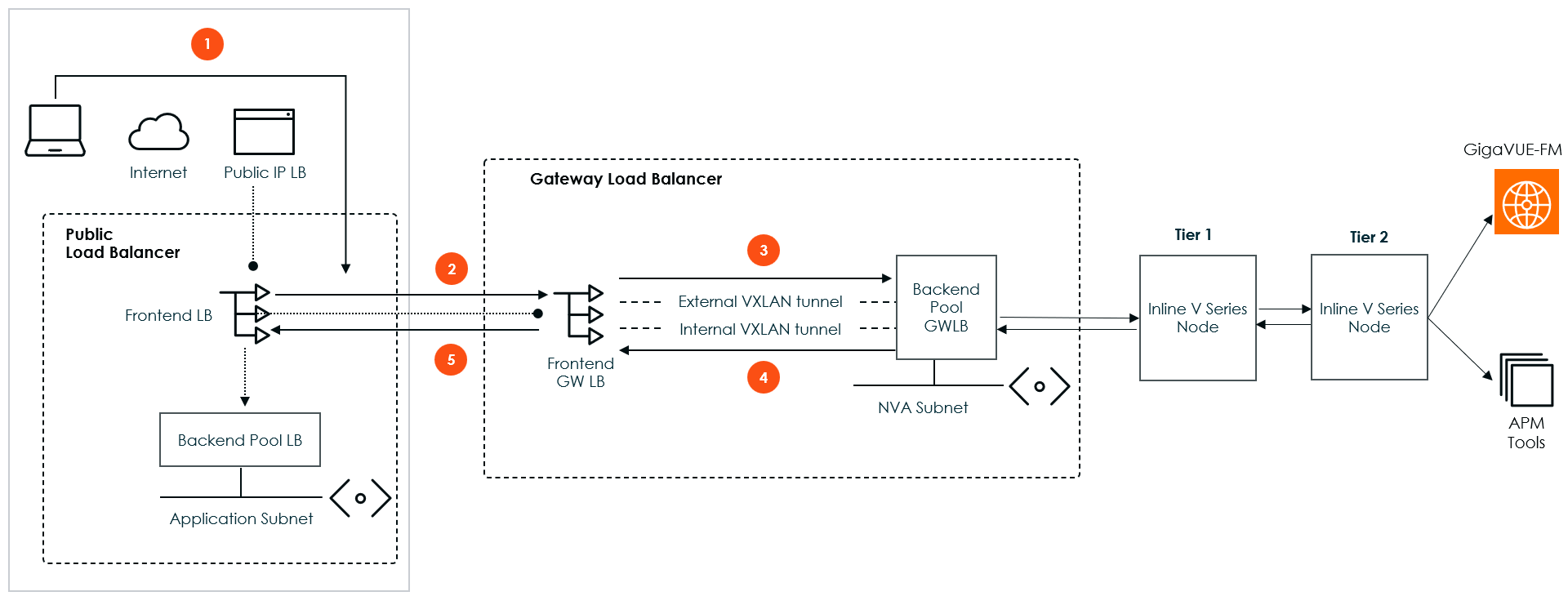 Note: Packets sent from the Gateway Load Balancer will be VXLAN encapsulated and forwarded to the Inline V Series Nodes.