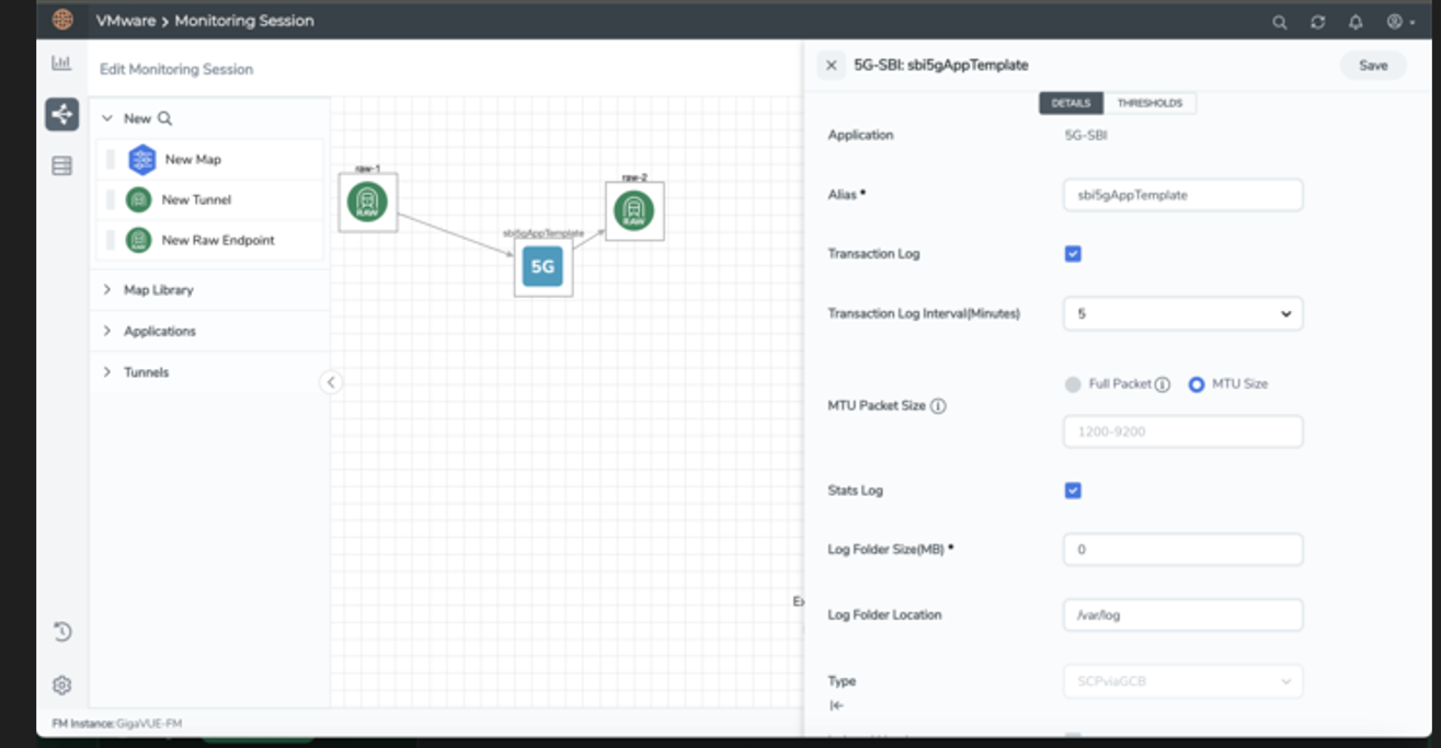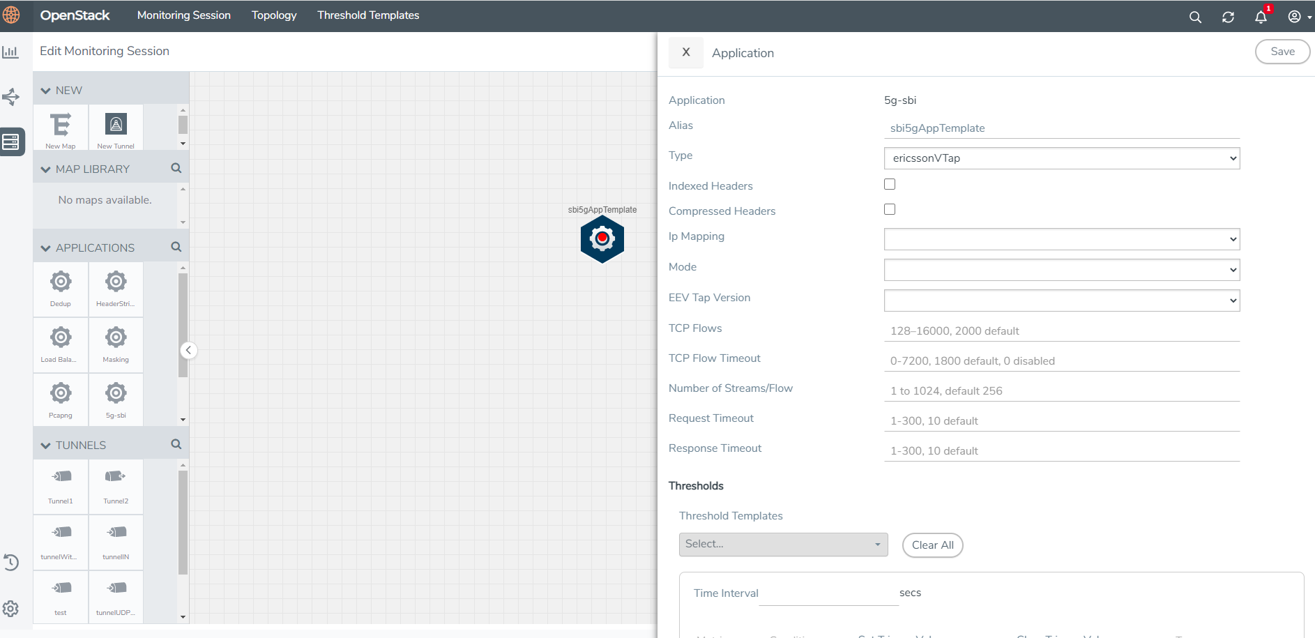 In GigaVUE-FM, for 5G-Ericsson, you must do the following to configure the 5G-SBI application in the monitoring session of a monitoring domain in the V Series: