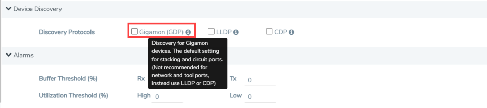 Select Enable Gigamon Discovery from the Actions menu at the top of the screen. |