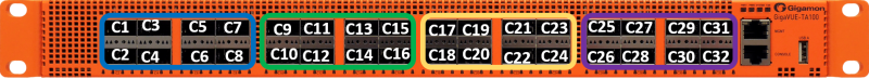 | GigaVUE-TA100—Following diagram illustrates the logical grouping of ports in GigaVUE-TA100: |