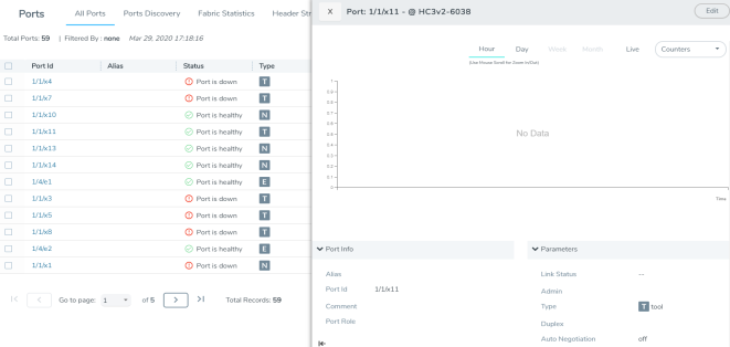 | Admin Status | Display ports based on their current admin status. The possible selections are: All — display ports with a status of Enabled or Disabled. This is the default. Enabled — display ports with admin enabled Disabled — display ports with admin disabled | ||||||||||||||||||||||||