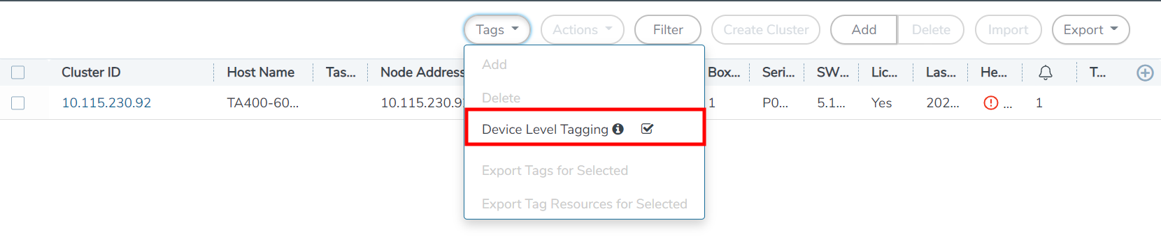 - The 'Device Level Node ID' allows you to associate tags to the devices, as against cluster-level tagging.
