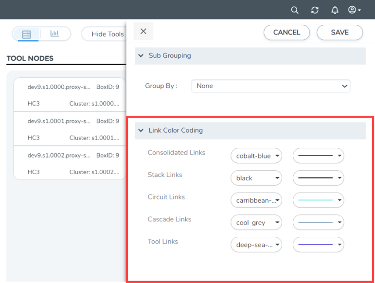 The Sub-Grouping option allows you to group the nodes in the Topology page: