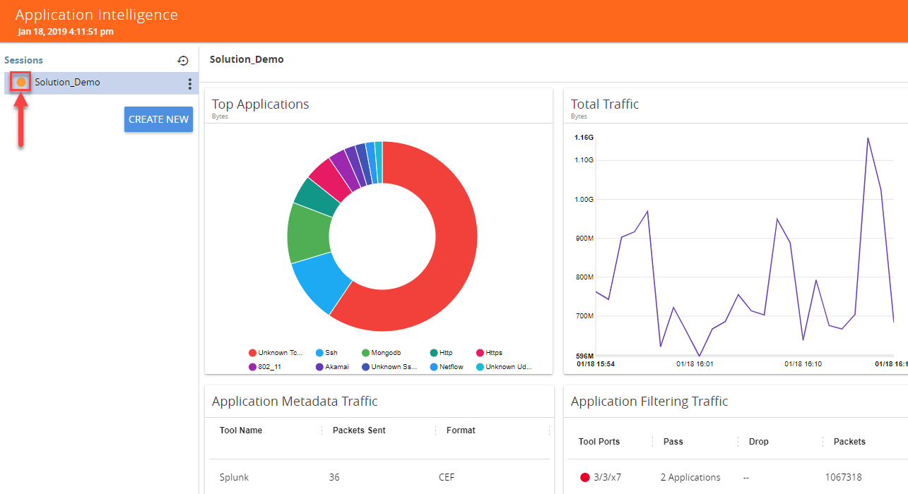 You can view the health status of the solution by a color indication next to the name of the solution as shown in the following figure: