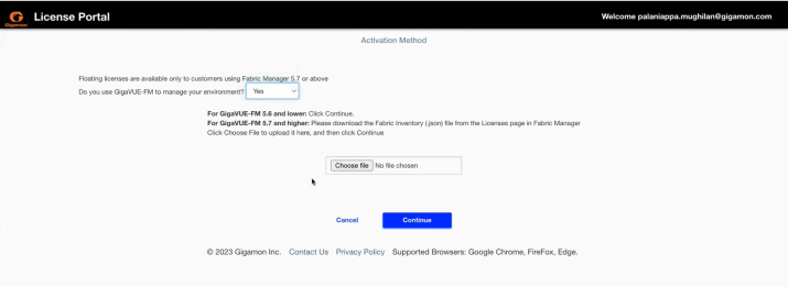 - Navigate to GigaVUE-FM GUI and upload the license file.