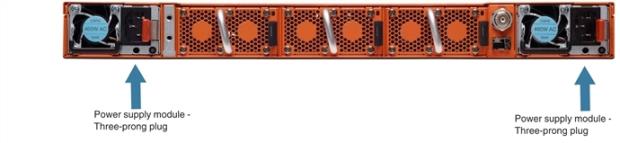 - Plug the other end of the power cables into a power source that can supply adequate power. For optimal power protection, plug the power supply modules into separate circuits. When connecting to the external AC power source, ensure that a Surge Protective Device (SPD) is installed at the AC power inlet. For information on GigaVUE‑HC1 power requirements refer to AC- and DC-Powered GigaVUE‑HC1.