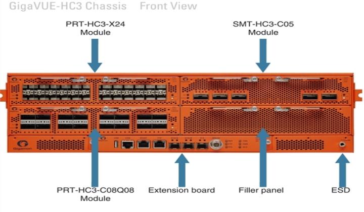 The fully-assembled GigaVUE‑HC3 chassis consists of a