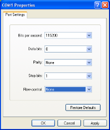 | 4. | Configure the port settings for the console connection as follows: |
