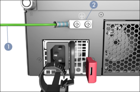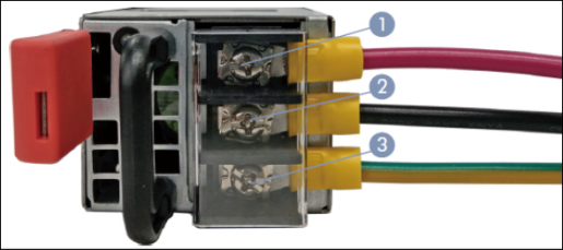 Connect the ground terminal (yellow-green wire, labeled as 3) of the power supply module to an earth ground connection. Hardware specifications for ground connection are listed below: |