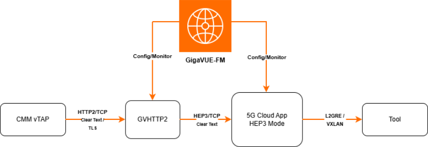 • Further the GVHTTP2 V Series Node transmits all processed traffic to the 5G-Cloud VM using HEP3 over TCP.