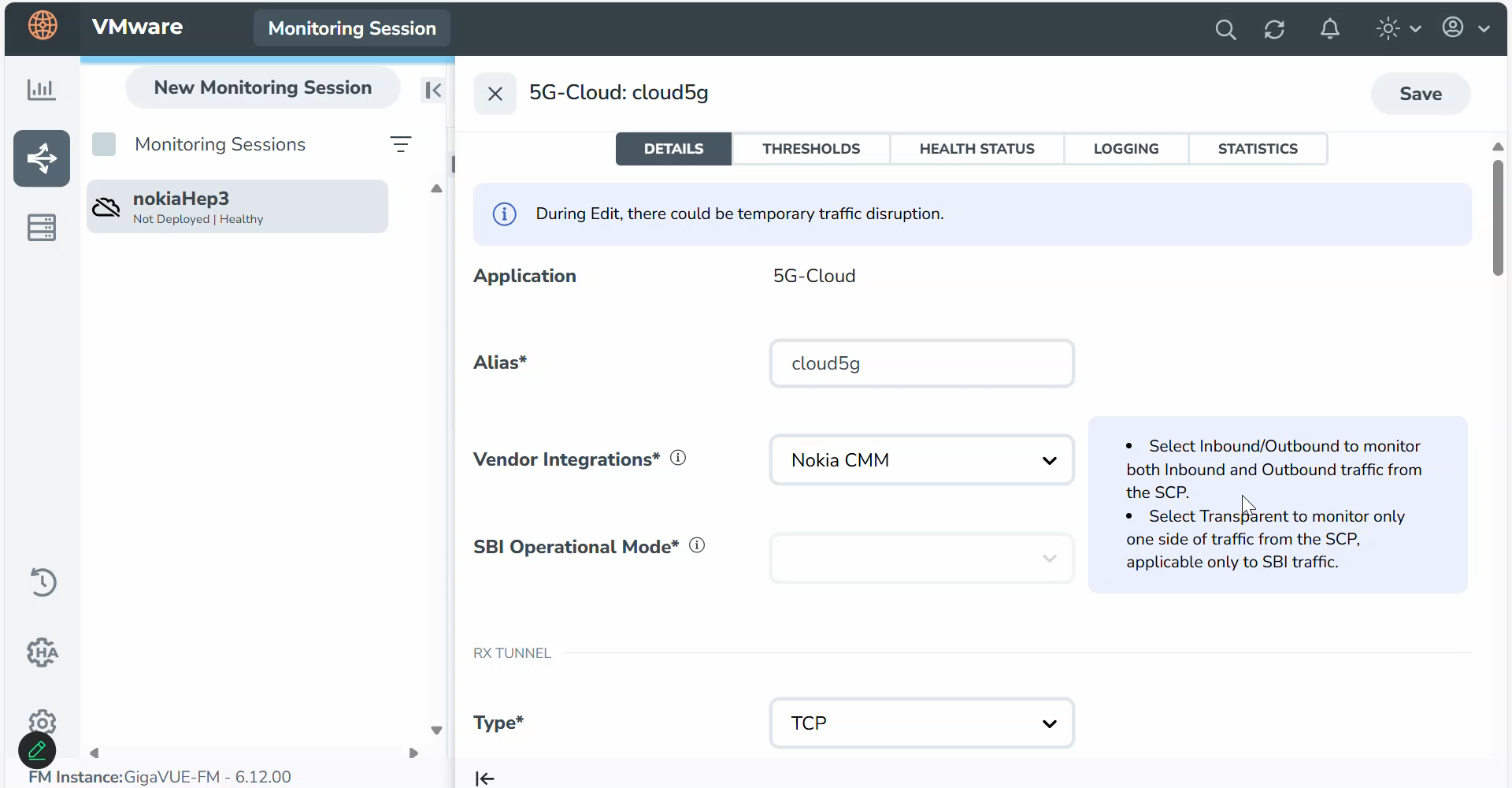 Specify the tunnel type as Nokia HEP3 over TCP from the dropdown for Nokia CMM.