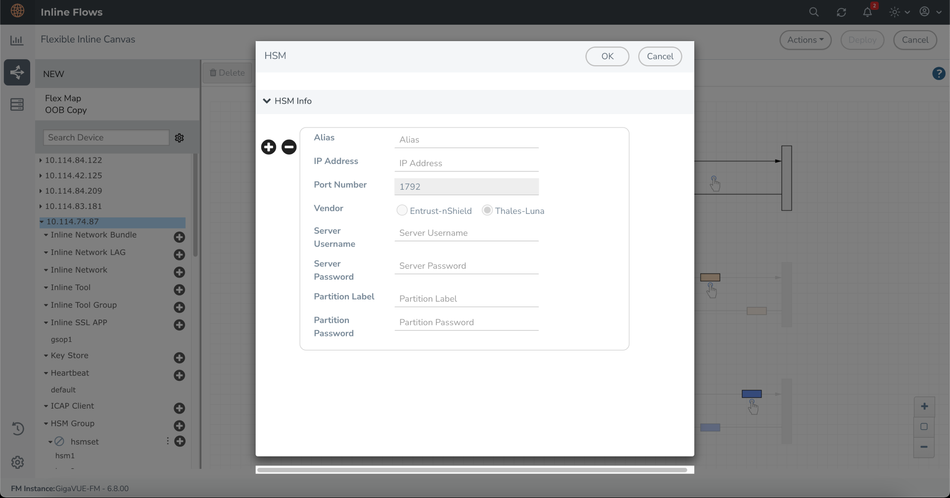 In the Flexible Inline Canvas, select the device for which the HSM Group is configured. |
