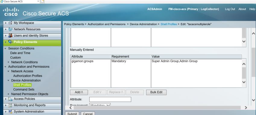 Use the following steps to configure Cisco ACS 5.x (TACACS+) to assign user groups to externally authenticated users in GigaVUE‑FM: