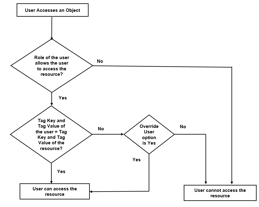 - The physical and logical resources that the user can access, such as the ports in a cluster that belong to a specific department in a location. This is defined using the Tags option.