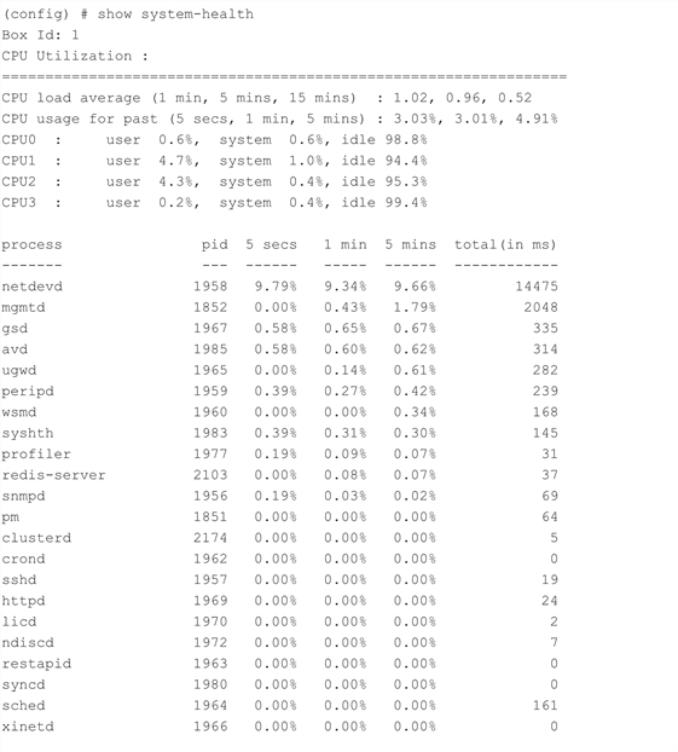 The following is an example of the show system-health command: