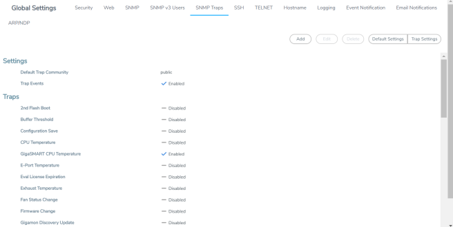 Once the GigaVUE HC Series or GigaVUE TA Series SNMP server is enabled, you can enable the sending of SNMP notifications from the SNMP through the SNMP page shown in 1.