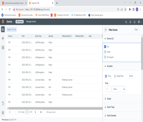 | Show non-taggable Entities | Displays events for entities that cannot be tagged, such as Policies, GigaVUE-FM instance. |