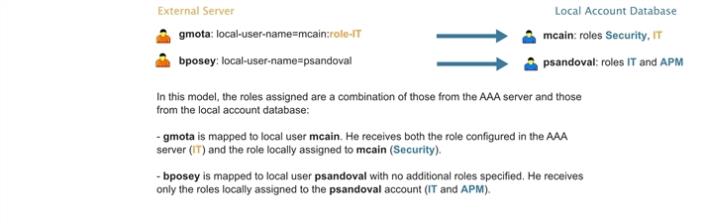 Refer to Configure Roles in External Authentication Servers for instructions on how to set up users with local-user-name attributes in RADIUS, TACACS+, and LDAP AAA servers.