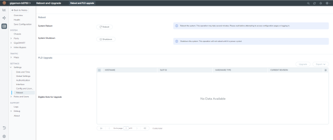 Select Settings > Reboot and Upgrade. The Reboot and PLD upgrade page displays as shown in 1. |