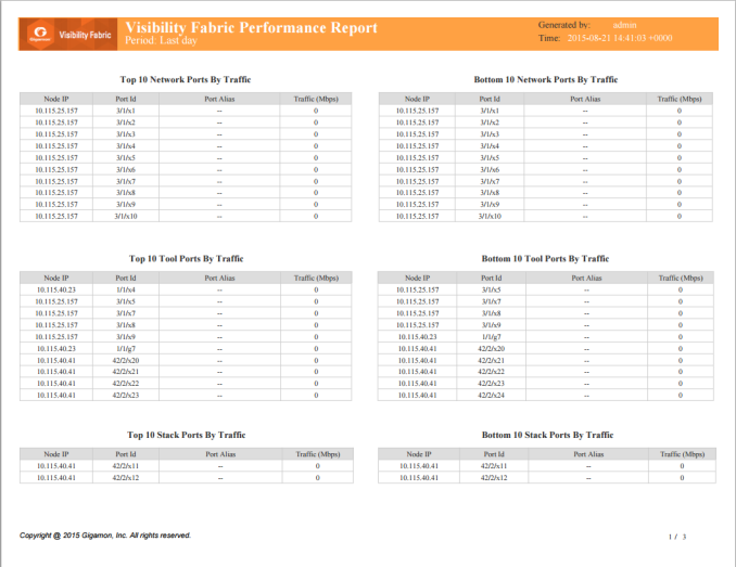 1 shows an example of a report for Visibility Fabric Performance.