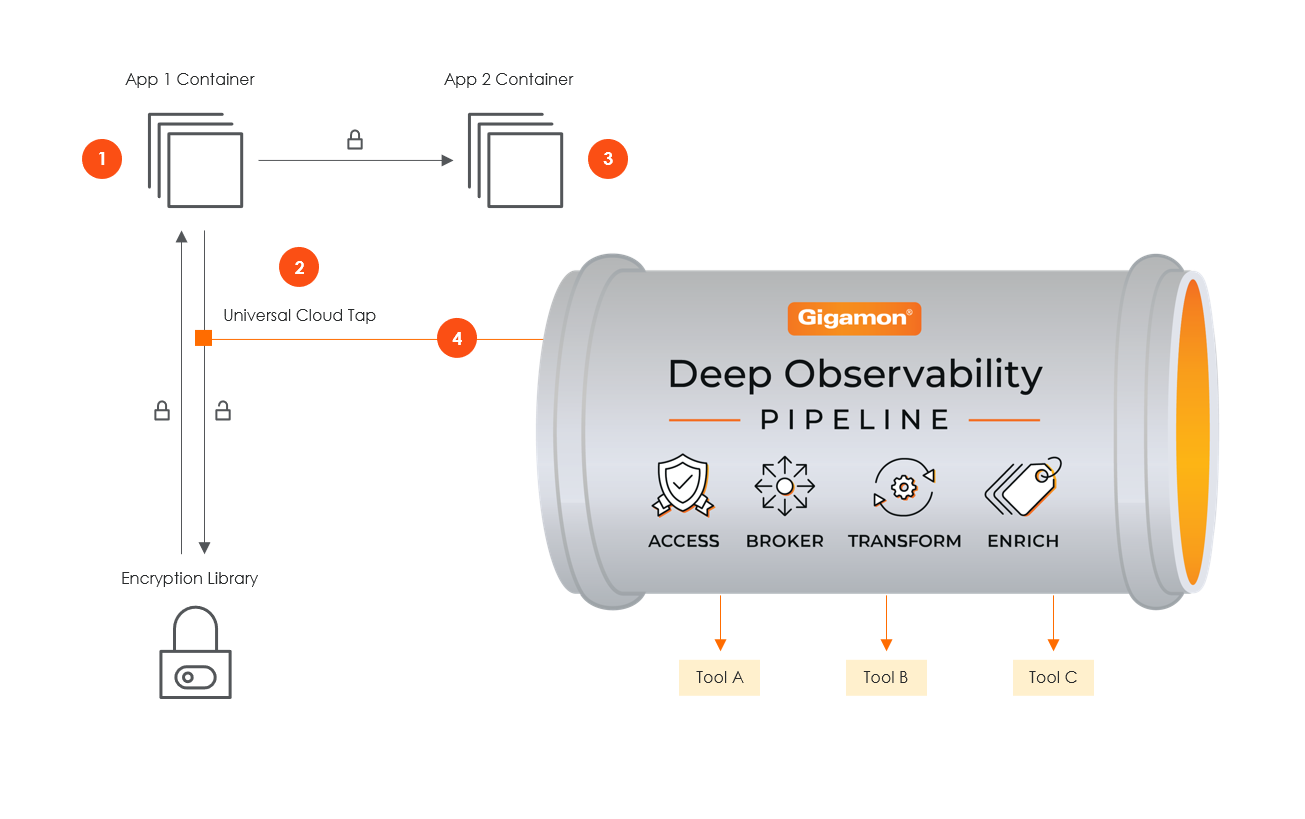 | 2. | GigaVUE Universal Cloud Tap (UCT), enabled with Precryption technology, gets a copy of this message before it is encrypted on the network |