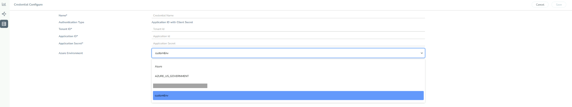 Azure Environment: Select an Azure environment where your workloads are located. For example, Azure_US_Government.
