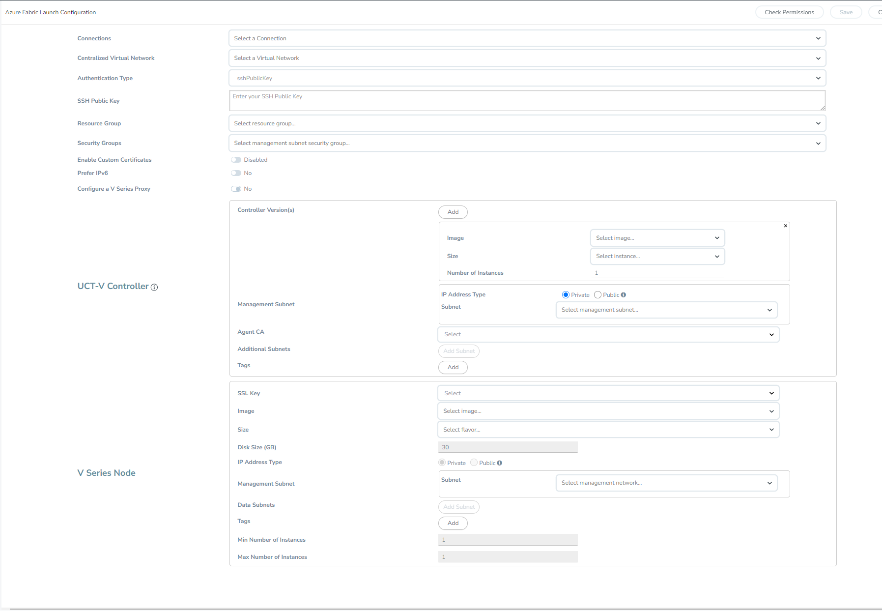In the Azure Fabric Launch Configuration page, enter or select the appropriate values for the UCT-V Controller as described in the following table.