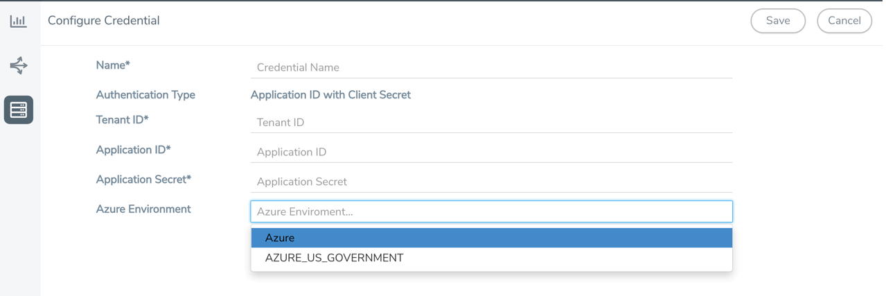Azure Environment: Select an Azure environment where your workloads are located. For example, Azure_US_Government.