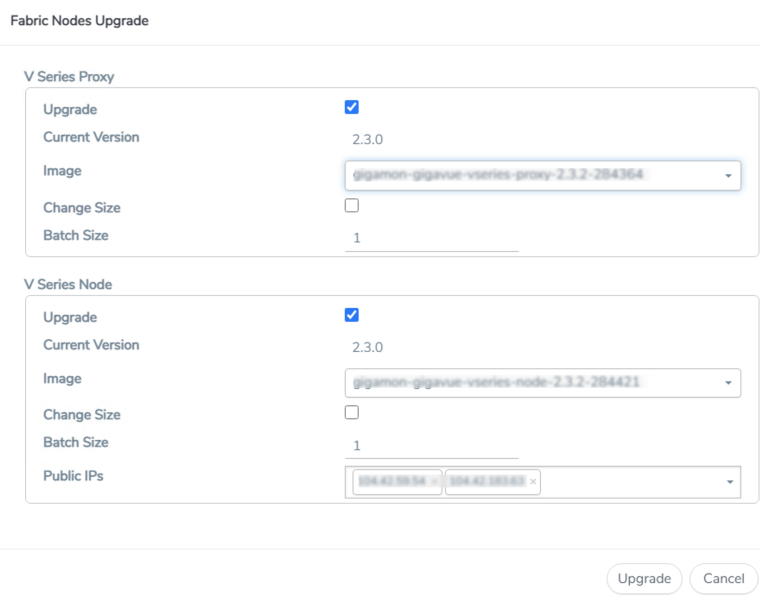 GigaVUE‑FM lets you upgrade GigaVUE V Series Proxy and GigaVUE V Series Node at a time.