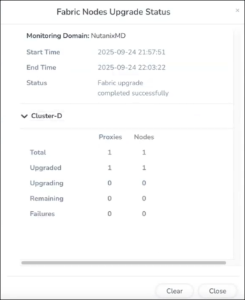 Note: If the upgrade fails, GigaVUE-FM will remove the new nodes and try to power on the original ones with their previous settings.
