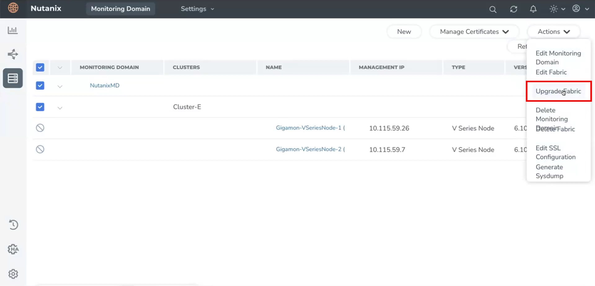 Click Actions > Upgrade Fabric.