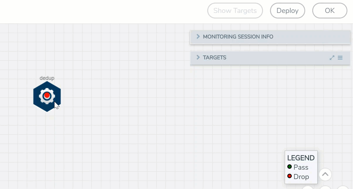 - Drag and drop Dedup from APPLICATIONS to the graphical workspace.
