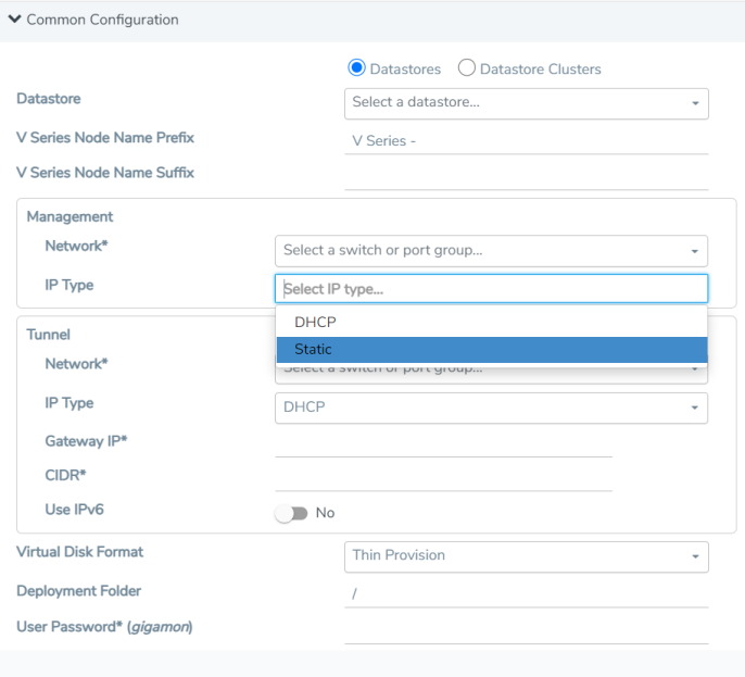 Select the IP type as Static if you wish to deploy a node using a Static IP address.