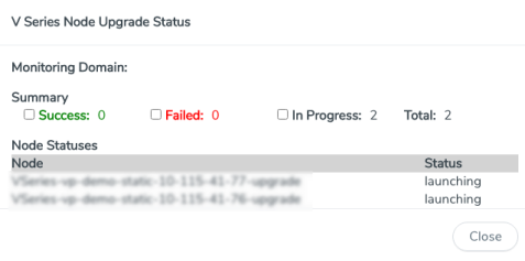 To view the detailed upgrade status click Upgrade in progress or Upgrade successful, the V Series Node Upgrade Status dialog box appears.