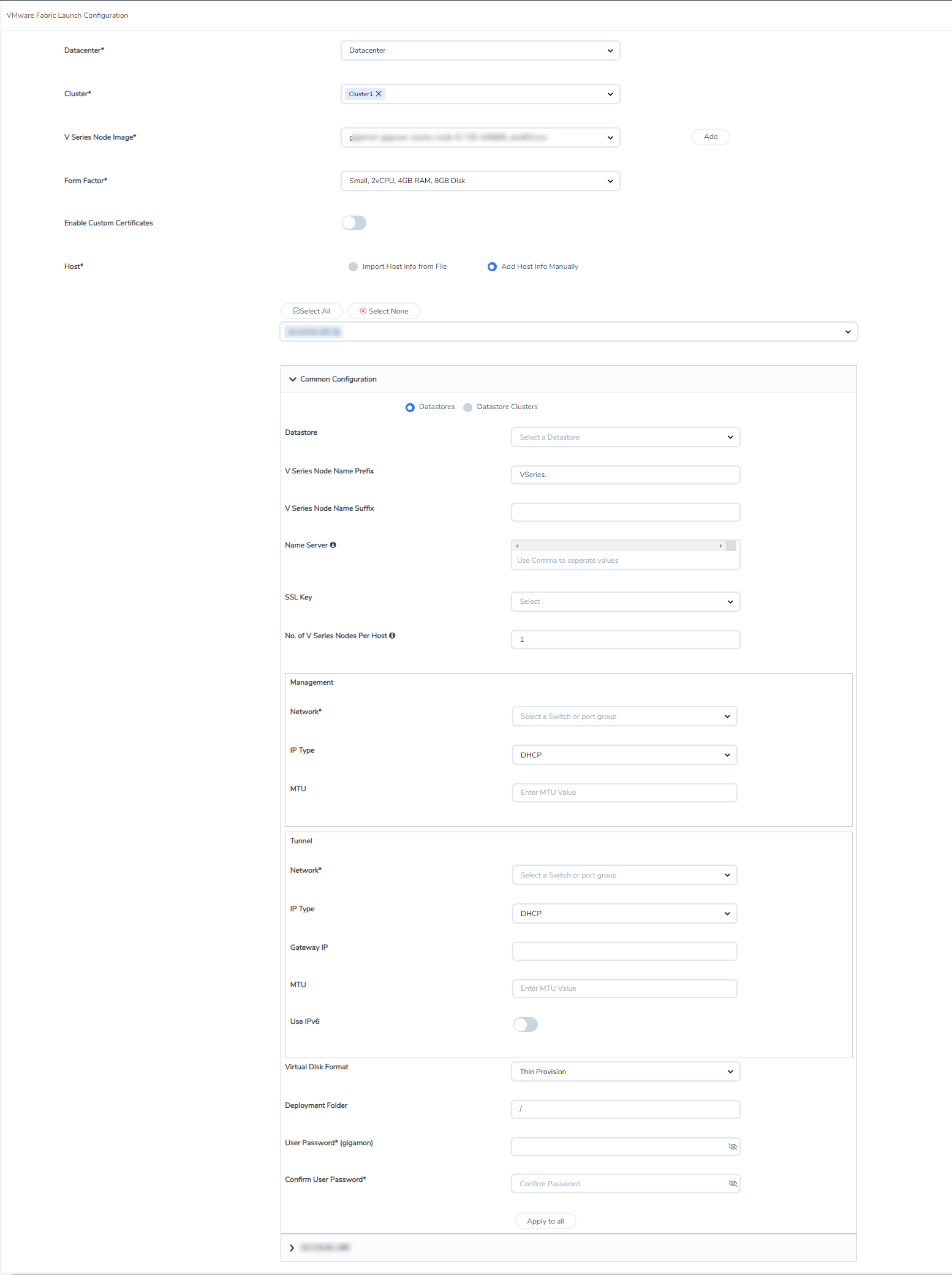 - On the VMware Fabric Launch Configuration page, enter or select the following details: