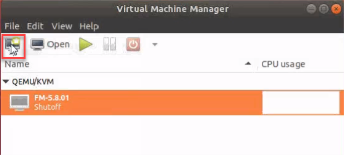 | 1. | Open the Virtual Machine Manager, and then click the Create a new virtual machine icon as shown in the following figure: |