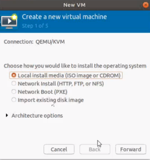 | 2. | Select Local install media (ISO image or CDROM), and then click Forward to continue. |