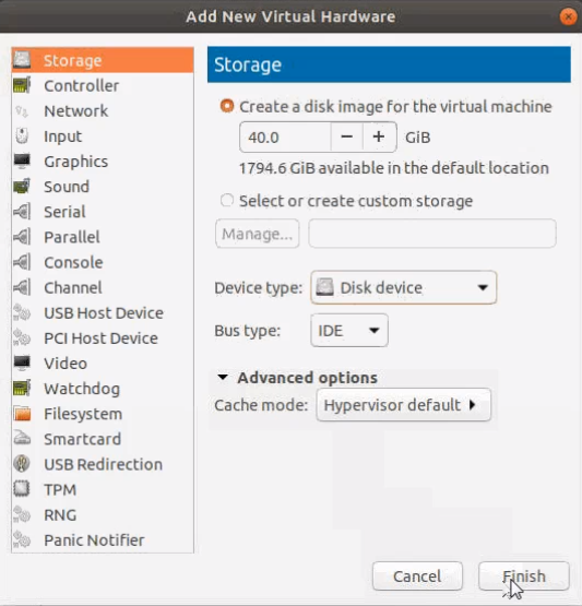 | 9. | In the Add New Virtual Hardware screen, set the disk size to 40 GiB. |