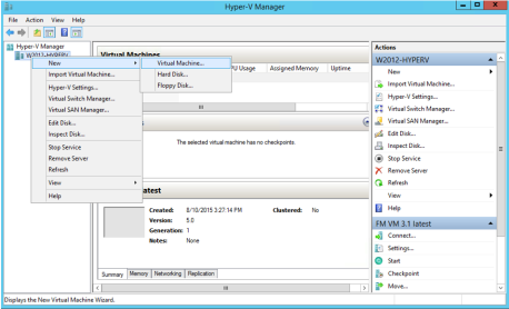 - From the Actions pane, click New > Virtual Machine. Refer to 1.