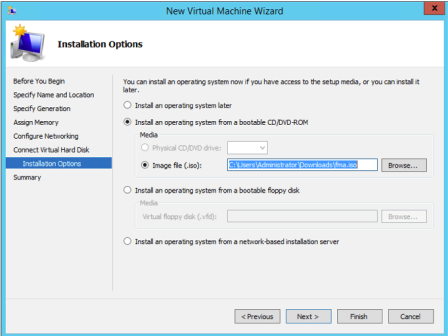 Note: The ISO image file must be stored in a location that is accessible to the Hyper-V Manager.