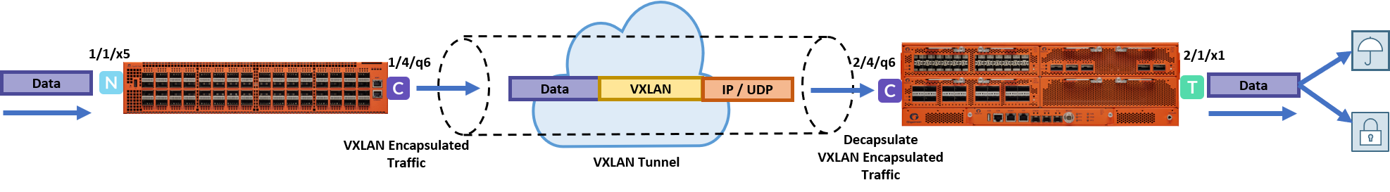 | Ingress VLAN tagging and Tool Mirror features are not supported with VXLAN tunnels. |