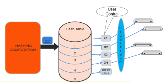 Controlled GigaStream uses advanced hashing with 1 to 256 buckets. With controlled GigaStream, you define the number of buckets first, unlike with regular GigaStream.